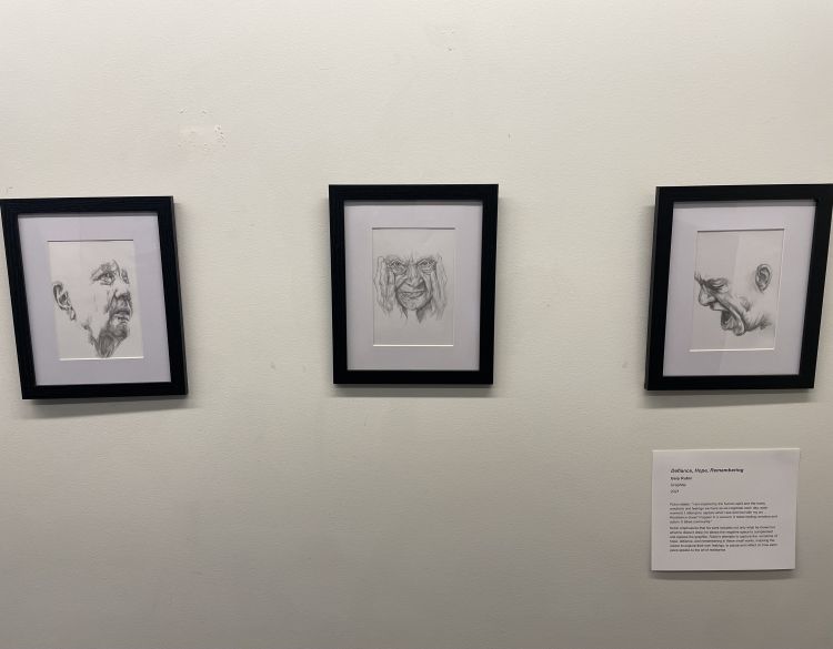 “This all started in January of 2020. I made a commitment to do one drawing per weekend; that was my goal for that year. COVID hit about a month and a half later, and I found myself isolated. I also found myself by my TV tray, where I keep my pencils and my sketchbook. I was doing up to three drawings, and that’s how I coped in isolation. Since 2020, I’ve done about 2,400 of these small graphite works. I am proud and honored to have it exhibited here.”